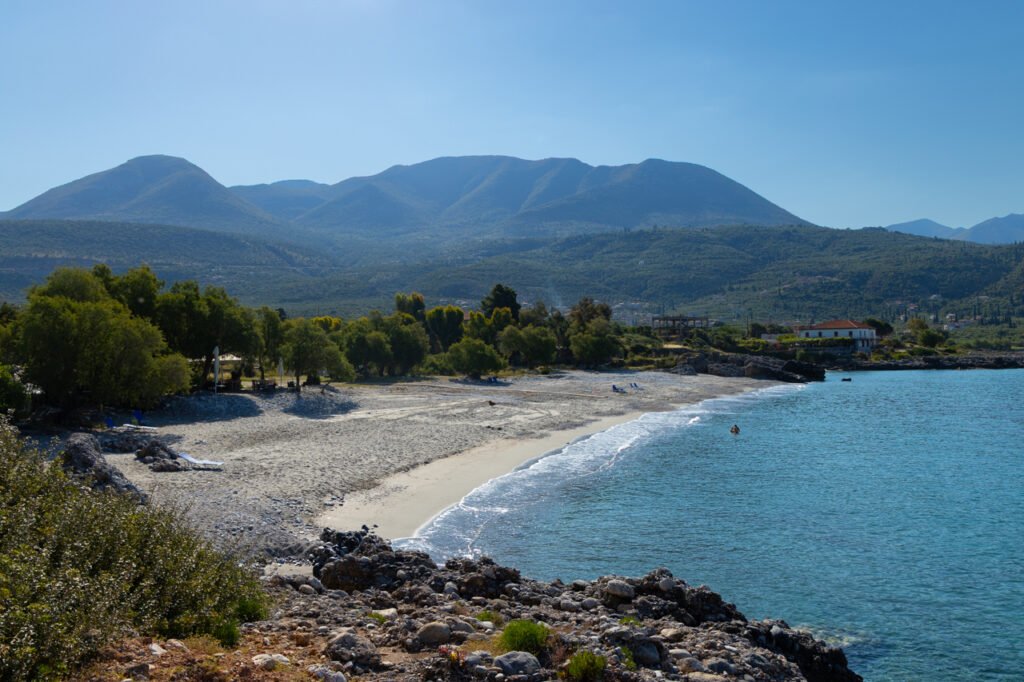 Agios Nikolaos is a short walk south of Stoupa. It can take approximately an hour, so make sure you’re prepared with a hat and water in hot weather. The path is relatively flat and meanders around the coast, offering beautiful views of Stoupa and the local olive groves.